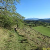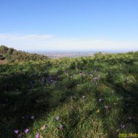 Nous rejoignons bientôt une petite route que nous prenons à droite en direction de la ferme de Parteteny. Après la ferme, nous retrouvons le sentier qui se faufile dans un bois et débouche, après une grimpette, sur la crête où la vue est magnifique sur la plaine, avec les colchiques qui tapissent le premier plan.