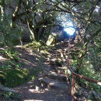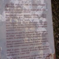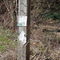 C’est en arrivant à La Viguière que nous avons découvert un reste de balisage en très mauvais état. A La Viguière, donc, nous laissons filer tout droit le parcours n°5 et nous retrouvons alors quelques balises de loin en loin qui nous mènent à La Pierre Plantée.