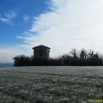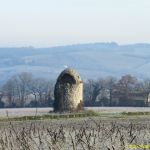 Nous partons ce matin avec une belle gelée au sol et heureusement car ça nous évite pas mal de boue. Nous nous en rendons compte dès le départ dans la côte herbeuse qui rejoint Sariac près d’un joli moulin en assez bon état de conservation. Arrivés au moulin nous prenons la piste à droite.