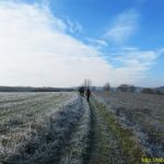 Nous démarrons du monument aux morts harnachés comme pour une randonnée en montagne. Il fait un bon -1°, le paysage est encore givré, mais le soleil monte vite et les arbres perdent vite la blancheur qui les enveloppe.
