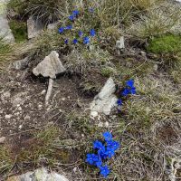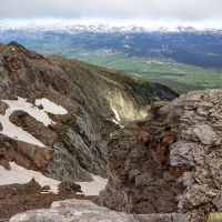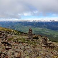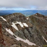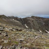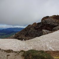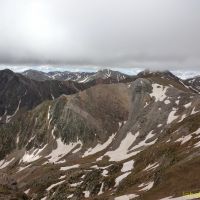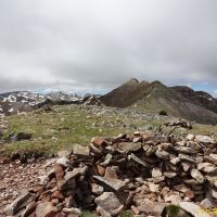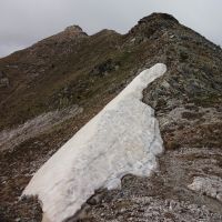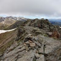 Pour le retour, nous continuons la crête en descendant légèrement à droite. Plus loin un névé nous barre le passage alors nous remontons un peu en crête et la suivons jusqu’à un pic sans nom où trône un énorme cairn . Un second un peu plus loin couronne le Pic de l’Homme, mais il n’est pas nécessaire d’y aller sauf si vous voulez le visiter aussi.