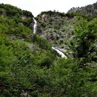 Nous partons du barrage de la Sarra, au-dessus de Sallent de Gallego et entamons la longue montée le long du Rio de Aguas Limpias. Le sentier vient d’être nettoyé et nivelé. Un peu en balcon par moment, il offre quelques belles vues sur les cascades qui font la beauté du site. Il faut éviter de venir ici en hiver ou au dégel, car de nombreuses avalanches de neige ou de pierres, déboulent sur ce sentier.