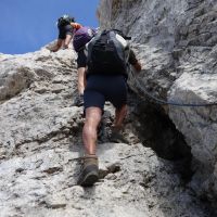 Pour descendre nous désescaladons le passage aménagé avec prudence car ce passage facile en montée est plus délicat en descente.
