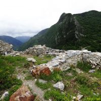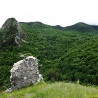 Peu avant Olbier, un sentier zigzague dans la pente rocheuse et nous nous hissons assez rapidement au sommet de l’éperon où trônent les ruines du château.