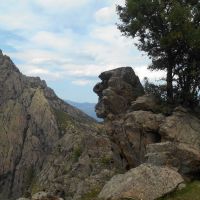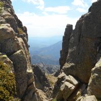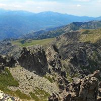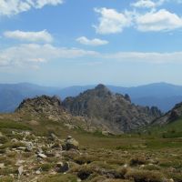 La vue est sublime mais vous nêtes pas encore au sommet. Continuez à gauche en direction de la Cima par des sentes plus ou moins marquées encombrées par la végétation. Pour atteindre la Cima, vous aurez quelques pas d’escalade très facile. Passez où cela vous semble le plus facile sans perdre de vue le signal du sommet. Ça passe mieux sur la gauche que sur la droite de la crête. La vue est tout simplement somptueuse avec au loin, l’étang de Diane, la barrage de Calacuccia à nos pieds , le Renoso, l’Orto, le Rontondo, Le Cinto, le Padru, tous les grands sont là et même tout là-bas, le désert des Agriates.
