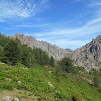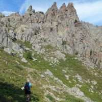 Le sentier démarre derrière l’église à droite. Passer deux portails que vous prendrez soin de refermer derrière vous. Le sentier est très net puis se perd un peu quand on arrive à la forêt de châtaigniers mais un balisage de points rouges peut vous aider jusqu’au sommet de la crête. On retrouve alors un sentier correct qui passe aux pieds des aiguille de Rundinaïa jusqu’à la grotte de Scaffa. Laissez la grotte à droite pour vous orienter dans le couloir encombré d’aulnes qui longe le torrent à votre gauche. Des cairns aident à l’orientation jusqu’au large col qui sépare la Cima de la dent d’Asco à droite.