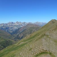 Le sentier est très peu visible tout au long de la course, il est donc déconseillé de faire cette randonnée par temps incertain. Pour grimper sur la crête il faut garder sur la gauche la pointe caractéristique du Campana d’Aneou et se diriger vers le col d’Aneou par une vallée herbeuse puis grimper à gauche sur la croupe du pic de Cuyalaret qui sera notre premier sommet. La vue y est magnifique notamment sur le pic d’Anayet qui trône face à nous.