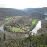Le vent est présent mais moins violent qu’hier et surtout moins froid. Nous revenons sur nos pas et descendons par une alternance de pistes et sentiers jusqu’à un nouveau pont sur l’Aveyron qui traverse en direction d’un autre tunnel.