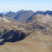 Du sommet, les gros cairns au sommet du Cortal Rossa attirent l’oeil. Rendez-lui une visite pour avoir une meilleure vue sur la vallée de Lanos par laquelle se faufile la HRP qui rejoint le col du Carlit. De plus, la crête pour y arriver offre des points de vues différents du pic de Coume d’Or.