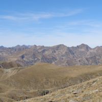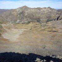 Sur notre gauche, le pic d’Auriol et le pic de l’Estagnas forment un cirque aux couleurs jaunies, l’étang de Bésines n’est pas visible, caché par les crêtes proches de nous.