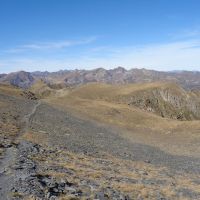 Le sentier garde la direction de la Coma et navigue sur un immense replat, qui nous fait nous sentir dans une plaine andine, en ce milieu du mois d’octobre, l’herbe verte et les fleurs ayant disparu, remplacées par le tapis mordoré automnal.
