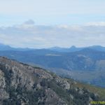 Nous poussons jusqu’au Suc du Capitaine pour sortir le déjeuner devant ce paysage magnifique et après le repas vite avalé nous laissons les vélos en bordure de piste pour monter à pied le rude sentier qui débouche à un genre de col. De là le sentier descend vers le village de La Souche, mais nous l’abandonnons pour suivre à gauche quelques balises jaunes qui nous hissent au sommet du Mont Aigü