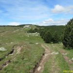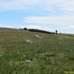 La piste nous conduit au Sommet de Mejan, 1457m. La vue y est intéressante sur le Rocher d’Abraham, le Sommet de Bournazon et le Sommet de Fontfreyde, entre autres. Nous apercevons également le Mont Mézenc, plus haut sommet d’Ardèche et le Mont Gerbier de Jonc où la Loire prend sa source.