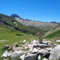Pour atteindre le col de la Crouzette, suivez le sentier qui passe à droite du lac et s’en éloigne pour traverser un défilé, nous longeons ensuite un long plateau à l’entrée duquel trône la cabane d’Eychelles, puis la grimpette commence.