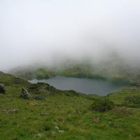 Il était dans le brouillard quand nous y sommes passés, mais s’il fait beau, il reflète le bleu du ciel et il est très joli avec les parois qui lui font un écrin protecteur.