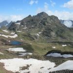 et comme la montée délicate au pic nécessite une bonne stabilité, nous descendons sagement versant français jusqu’aux lacs de l’Arbella, 200m en contrebas, où nous trouvons abri derrière un rocher pour déjeuner.