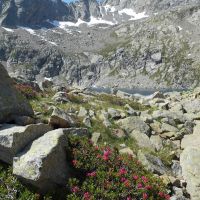 Pour accéder au col, traversez entre les deux lacs et suivez la bordure de celui de gauche pour gagner le pierrier visible qui vous mènera au col d’Estibe Aute. Au col prenez à gauche pour le sommet sans perdre de vue qu’il est réservé aux montagnards. Ce n’est plus de la randonnée.