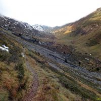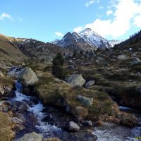 Nous prenons la direction du refuge du Rulhe et remontons un ruisseau rive droite, par un sentier balisé en jaune et très bien tracé. L’endroit est très couru. Nous rejoignons rapidement une bifurcation et nous prenons la branche de droite pour laisser le sentier du refuge à gauche. Une passerelle nous fait traverser le ruisseau. à la sortie, nous prenons à droite le sentier toujours balisé. C’est un tronçon de la HRP.