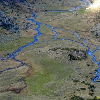 Quand nous arrivons au ruisseau, nous le traversons facilement à gué et le suivons rive gauche, dans un mélange de marécages et d’énormes bloc qui ont donné son nom au Plat des Payres