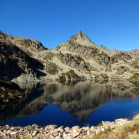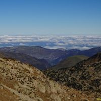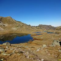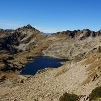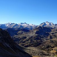 Celle de droite nous amène à la Hourquette de Caderolles, d’où nous savourons la vue sur les Lacs de Port Bielh. Il faut descendre un peu vers le grand lac de Port Bielh, pour traverser un pierrier croulant et instable pas très engageant sans neige.