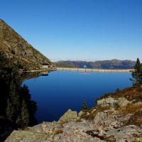 Nous rejoignons rapidement le premier lac, le Réservoir des Laquets, puis le lac de Greziolles. Il est plutôt vide en cette période de l’année, prêt à recevoir pluies et neiges hivernales, cela lui donne un air lunaire qui n’est pas pour me déplaire.