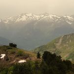 Dimanche il fait une chaleur orageuse à peine supportable dès le matin. Nous ne le savons pas encore, mais c’est le début d’une longue période de canicule, rare pour un mois de mai, au mois de juin nous atteindrons 41° en plaine dans le Sud-Ouest. Nous nous sommes levés tôt pour monter nous garer à Barèges au bord du Bastan. Nous franchissons la passerelle et c’est parti pour la montée dans le bois de Capet, le long du gave, en direction de la crête d’Eres Tiarreres d’où la vue est superbe.