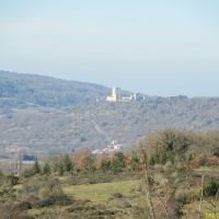 Nous sortons de la forêt et débouchons sur une colline au-dessus du village avec de belles vues sur la montagne de Tabe au loin. Le massif château de Puivert trône sur son promontoire. Pourquoi ne pas lui rendre une visite au retour?