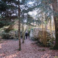 Peu après ce passage, commence le labyrinthe, d’abord par quelques arbres moussus au milieu desquels sont posés quelques gros rochers, puis par une véritable forêt de blocs géants, c’est là que commence le paradis des enfants.