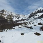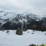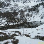 Nous bifurquons assez rapidement pour monter sur la crête en direction du Fouzes d’où la vue sur Bassiès est intéressante. Nous revenons vers le Lac de Labant que nous contournons. Le tour est assez chaotique en été mais avec la neige, il devient possible de passer les chaos rocheux.