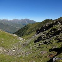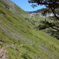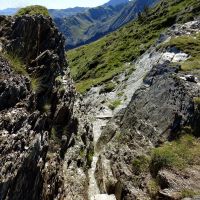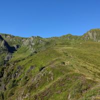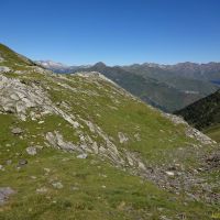 On continue notre traversée en faux plat peu éprouvant, jusqu’à la crête qui descend du Pichebrou où on bifurque à droite pour rejoindre la crête de Cupeyroude que l’on remonte jusqu’à un verrou après lequel il faut rester à flanc pour remonter les contreforts de la crête de Hitte Monte. Jusqu’à maintenant, nous sommes montés de ressaut en ressaut avec des traversées en faux-plats montants entre deux.