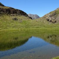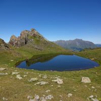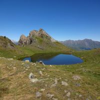 Le premier lac est encore à gagner à la force du mollet pendant un bon quart d’heure et là, régalez-vous. Vue du Neouvielle à l’Arbizon, et la crête du pic d’Aret occupent le paysage. Les trois lacs sont presque sur la même courbe de niveau, du coup, pas de grimpette jusqu’au lac suivant. Le second reflète plus que les autres le bleu du ciel ;-).