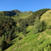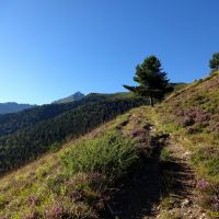 A une fourche de sentiers prenez à gauche (cairn) car celui de droite descend encore jusqu’à la cabane où il est inutile de passer.