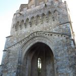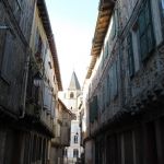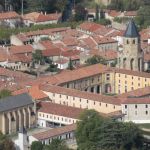 Nous voilà partis par une petite passerelle à travers le village. Nous passons devant l’église du IXème siècle dont ne reste que le clocher, nous admirons la maison des tisserands et son superbe colombage puis devant sa célèbre abbaye-école que nous verrons mieux depuis le rocher de Bernicaut.