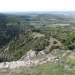 Nous déjeunons au sommet qui forme un vaste plateau, la vue y est magnifique sur le plaine en 360 et lorsque le temps est fin, nul doute que les Pyrénées sont visible depuis ici. Un sentier aérien permet d’accéder à des grottes à flanc de falaise qui surplombent le village de Durfort et les Gorges du Fort où vous pourrez faire la via ferrata de Malamort.
