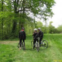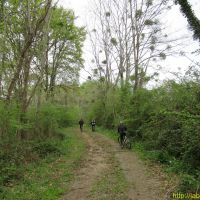 Après manger, nous enfourchons les vtt et nous montons visiter le village, qui vaut le détour. Effectivement, la pluie cesse et la douceur prend le pas sur le froid du matin. Nous regagnons le lavoir et continuons sur le route en direction de Créon d’Armagnac par laquelle nous sommes arrivés. Après un petit pont sur la Douze, nous prenons à gauche l’itinéraire équestre balisé en jaune et nous ne le quitterons plus.