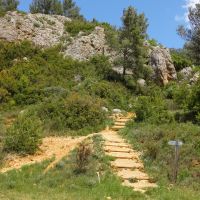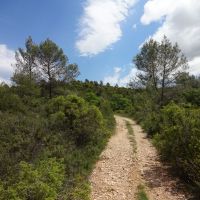 Du vaste parking peu avant le rond-point Marcelin Albert, que l’on rejoint, on suit le balisage bleu qui prend la rue de l’ancienne cave et on suit ce chemin goudronné sur un bon kilomètre. On le quitte pour suivre une piste à gauche, toujours avec un balisage fiable.