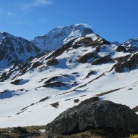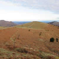 Effectivement, comme nous l’avons supposé, la descente vers le Soum de Castet est enneigée et les crampons nous sont bien utiles sur D- 200m, surtout au départ quand la pente est plus soutenue et la neige très dure. Plus bas, la neige est plus molle et nous quittons les crampons peu avant le Soum de Castet.