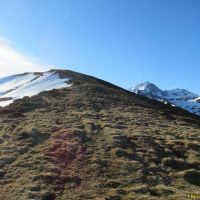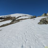 Crampons dans le sac, car je pense que vue l’orientation de la crête à la descente, nous devrions trouver de la neige dure.