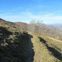 Du Col de la Courade, nous montons à gauche à travers bois, par une piste balisée en jaune. nous atteignons la crête, puis la sortie de la forêt et suivons alors la crête des Sarradets qui nous amène au sommet du Liset de Hount Blanque en terrain totalement sec.