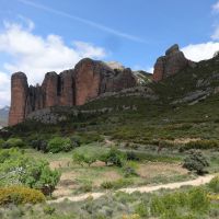 Arrivés au village, dirigez-vous vers la gauche de la grande paroi, contrairement à ce qu’indique les panneaux qui le font dans l’autre sens. Les vues sont beaucoup plus impressionnantes dans ce sens.Les Mallos de Riglos sont le royaume des grimpeurs qu’on peut voir et entendre en grand nombre sur les parois.
