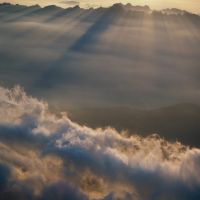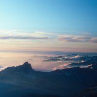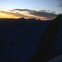 Nous partons vers 3h30 à moitié somnolents et faisons une petite halte au Vallot où nous nous cassons les dents sur nos barres Mars gelées, il fait encore nuit et quelques grimpeurs devant nous forment une jolie guirlande de frontales. Nous espérons arriver au sommet pour assister au lever du jour.
