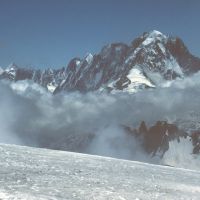 A Chamonix, nous passons nos journées à grimper à droite à gauche vers des sommets mythiques dont mes lectures avaient gravé le nom dans ma mémoire, qui nous servaient juste d’entrainement, alors qu’au final, ils se sont avérés plus « montagnards » que le Mont Blanc. Pourtant, le fleuron, celui pour lequel nous étions là, THE Mont Blanc, nous n’avons pu y grimper qu’au bout de 5 jours d’attente inquiète, à cause du temps maussade.