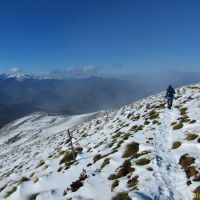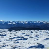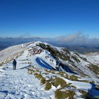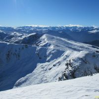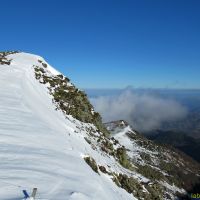 Nous suivons la longue crête pour déboucher au sommet du Mont Fourcat et le Pic Saint-Barthélémy nous salue de toute sa splendeur. A ses pieds, la petite station des Monts d’Olmes attend la neige pour vivre enfin sa saison hivernale.