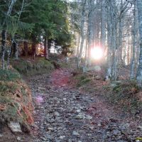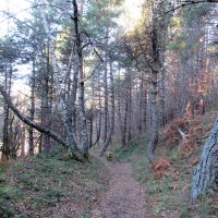 Depuis le parking, nous prenons la direction du Col de Traucadou par un petit sentier bordé d’arbres aux formes fantasmagoriques. Nous y sommes très vite. Nous prenons alors à droite, une large piste que nous laissons rapidement pour couper droit par une rigole qu’il vaut mieux emprunter par temps sec. Si c’est trop mouillé, suivez la piste qui fait quelques grands lacets.