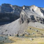Nous suivons cette large piste jusqu’à la passerelle sur le ruisseau de La Géla que nous traversons. Le sentier remonte doucement vers Barroude dont nous voyons vite les belles murailles qui nous servent de fil d’Ariane. Une grimpette peu après le plat d’Escouerens pour rejoindre le sentier qui arrive de Chermentas et rejoindre le lac n’est plus qu’une formalité.
