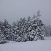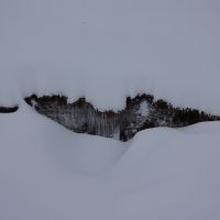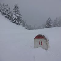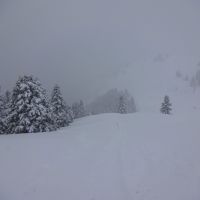 La route est bien couverte mais nous montons sans mettre les chaines grâce aux nouvelles technologies :-€ mais le temps s’est mascagné à notre arrivée et nous voilà un peu refroidis. Il neige à petits flocons sans discontinuer et on y voit degun. Pourtant nous nous lançons après un repas-réflexion près de la cheminée du restaurant.