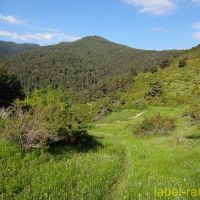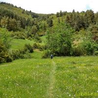 Après le village de Riu de Cerdanya, nous suivons la longue piste qui mène au refuge de les Esposes où nous laissons la voiture. Le sentier peu visible au départ, démarre dans l’herbe, à droite du refuge et plonge en direction d’un ruisseau. On suit cette vague sente balisée de gros points oranges. Nous traversons bientôt le ruisseau et retrouvons la piste qui part du refuge, mais si on la prend du refuge, elle allonge considérablement le trajet.