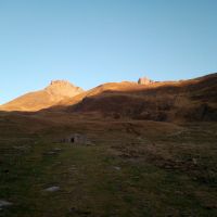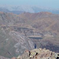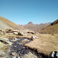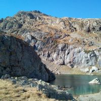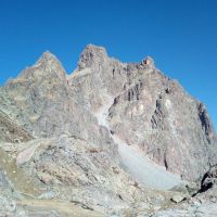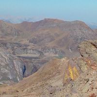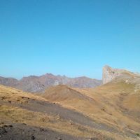 Pour notre part, nous nous dirigeons à vue par des sentes, vers le col de L’Iou, masqué par la base du pic de Peyreget, mais en gros, il faut suivre la droite du cirque d’Anéou en s’élevant légèrement tout au long du parcours. Nous arrivons ainsi au pied du col auquel nous grimpons par une sente raide. Sachez qu’il est possible de rejoindre le sentier venant du col du Soum de Pombie moyennant quelques lacets. Le pic de Peyreget n’attire pas le regard, il ressemble plus à une crête rocheuse qu’à un pic tel qu’on l’entend habituellement, surtout depuis le cirque d’Aneou.