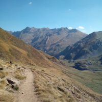 Le sentier est bien marqué en profil descendant vers le lac qu’il n’est pas nécessaire d’atteindre, on le laisse en contrebas à gauche pour prendre en traversée le sentier du Parc National. Un sentier part directement du col de L’Iou et peut vous tenter. Sachez qu’il présente un passage en dévers assez raide et ne vous fera pas gagner beaucoup de temps.