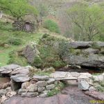 Tout écorchés et la carrosserie en ruine, loool, nous remontons tranquillement le long d’un ruisseau qui offre de jolies cascades. Un peu avant la ruine à laquelle on accède par un petit pont rustique en pierres plates, nous rejoignons un sentier qui arrive d’Aphalaenea (que nous aurions pris si vraiment nous n’avions pas trouvé l’ancien)